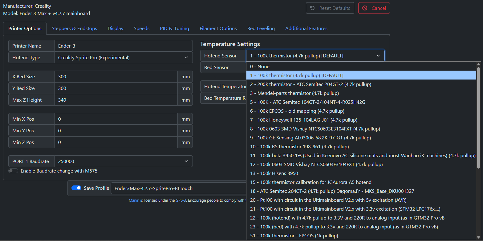 What thermistor should I be choosing when building the firmware?